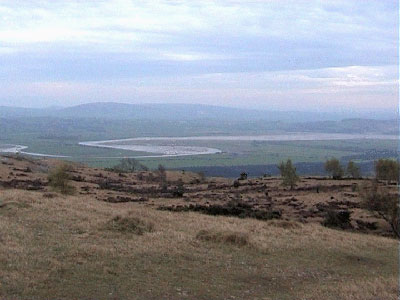 The two foot wide stoney path heads upwards quite steeply into the trees. After a few minutes the path's incline becomes less steep, and it is accompanied on its left-hand side by a two foot high wall. As this wall disappears, the path is joined by a further path coming in from the left. Continue on in the same direction following the white arrow on a post by the path, then ahead at the next white arrow for a further one hundred yards where a bench is reached on the left. Just before reaching this bench, take the path off up to the left again following the white arrow. As the path begins to flatten it pulls around to the left to pass through a small gap in a wall. Through this wall, follow the path around to the right and pass back through another gap in the wall, still following the white arrows. This well worn path carries on under tree cover for a further fifty yards, before coming out into the open as the path narrows. This path then steadily climbs as it leaves all trace of tree cover behind. As the first summit is reached the full extent of the scar can now be seen ahead, and behind the River Kent and the Kent Estuary can be seen. The cairn on the farthest summit ahead is that on Lord's Seat. The route to be taken from here is the path which follows along the line of cairns to Lord's Seat.